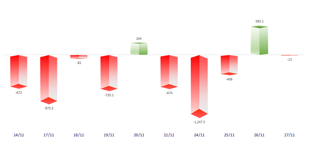 FOREIGN NET FLOW 10 NEAREST SESSIONS (BILLION VND)