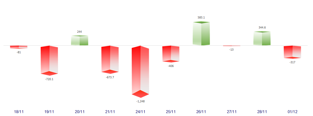FOREIGN NET FLOW 10 NEAREST SESSIONS (BILLION VND)