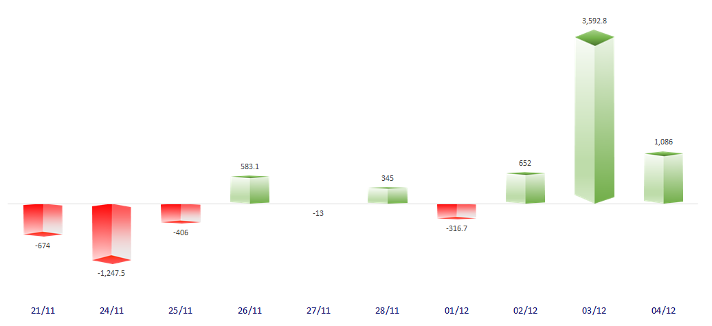 FOREIGN NET FLOW 10 NEAREST SESSIONS (BILLION VND)