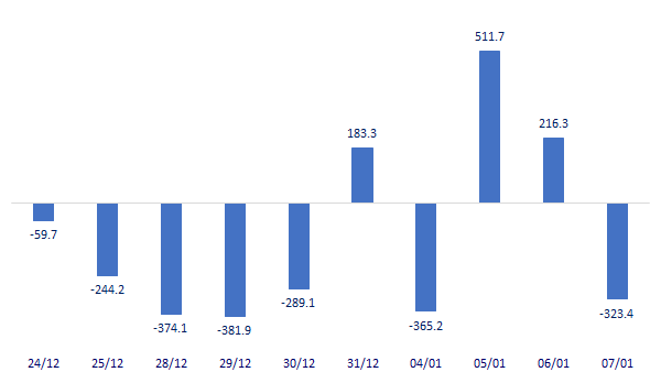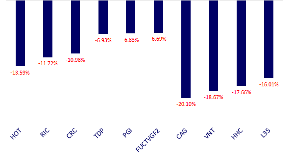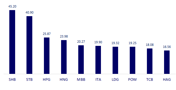 - Giao dịch khối ngoại là điểm trừ khi họ bán ròng trên cả 3 sàn với tổng giá trị 323 tỷ đồng, trong đó HPG là cổ phiếu bị bán mạnh nhất với giá trị 253 tỷ đồng.
