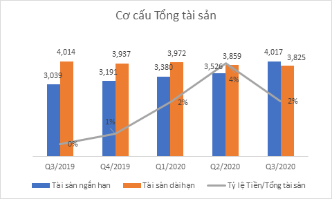 Tính tới cuối Q3/2020 tổng tài sản của C4G đạt 7,841 tỷ đồng tăng 11.2% so với cùng kỳ 2019. Tiền và tương đương tiền có sự cải thiện đáng kể so với thời cuối các Quý năm 2019 và ghi nhận 162,6 tỷ đồng.