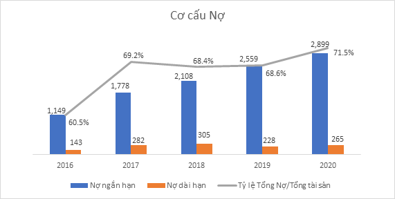 Cơ cấu Nợ phải trả của SHI liên tục tăng lên trong mấy năm trở lại đây, do sự gia tăng của các khoản vay ngân hàng ngắn hạn để tài trợ cho các dự án đang triển khai. Tại thời điểm 31/12/2020, Công ty ghi nhận Tổng nợ phải trả 2.899 tỷ đồng, trong đó Vay ngân hàng ngắn và dài hạn đạt 2.231 tỷ đồng. Theo đó, cả năm 2020 vừa qua, công ty đã ghi nhận chi phí lãi vay cao nhất trong 5 năm trở lại đây với gần 156 tỷ đồng.