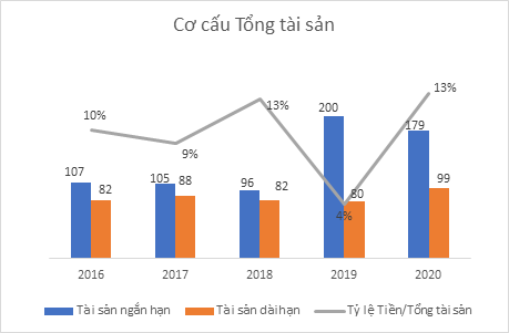 Tại thời điểm kết thúc năm 2020, CNC ghi nhận Tổng sản gần 279 tỷ đồng, chỉ giảm nhẹ so với kỳ. Về cơ cấu Tài sản ngắn hạn, mặc dù có sự suy giảm Các khoản phải thu và Hàng tồn kho lần lượt 27,2% và 22,5% nhưng bù lại Các khoản tiền và tương đương tiền tăng đến 3 lần và đạt 36 tỷ đồng. Điều này cũng được thể hiện thông qua chỉ số Thời gian thu tiền khách hàng bình quân trong năm 2020 được cải thiện đáng kể chỉ còn 25 ngày (trong khi năm 2019 là 35 ngày và năm 2018 52 ngày).