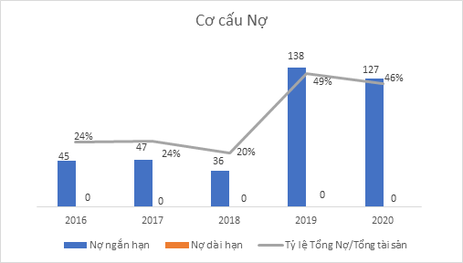 Tỷ lệ Nợ/Tổng tài sản cho thấy tăng mạnh trong vài năm trở lại đây và đạt 46% vào thời điểm cuối năm 2020 nhưng Nợ của CNC chủ yếu là Khoản phải trả người bán (chiếm đến 88% cơ cấu tổng nợ), cụ thể là nợ công ty mẹ, CTCP Traphaco tiền nguyên vật liệu sản xuất. Công ty hiện tại không có nợ vay ngân hàng, cũng như Nợ dài hạn.
