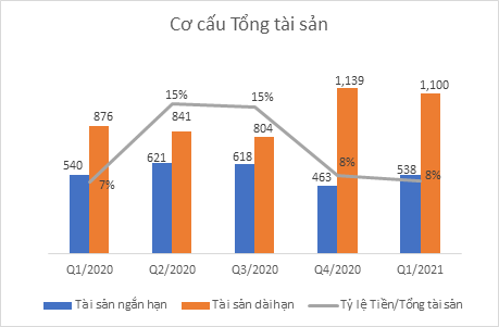 Tại thời điểm kết thúc Quý 1.2021, VIP ghi nhận Tổng tài sản gần 1.638 tỷ đồng, tăng 15,7% so với cùng kỳ, chủ yếu do công ty đã mua thêm tàu Petrolimex 21 vào cuối năm 2020.