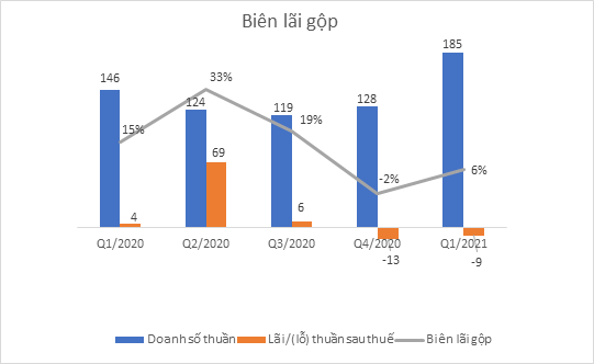 Kết thúc Quý 1/2021, VIP ghi nhận doanh thu thuần 185 tỷ đồng, tăng 21% so với cùng kỳ, tuy nhiên giá vốn hàng bán tăng mạnh lên đến 40% nên công ty ghi nhận lãi gộp chỉ còn 10,3 tỷ đồng. Thêm vào đó, công ty có phát sinh chi phí tài chính Quý 1.2021 tăng 2,1 tỷ đồng so với cùng kỳ do phát sinh thêm khoản vay 188 tỷ đồng đầu tư mua tàu Petrolimex 21. Kết quả, cuối quý VIP ghi nhận khoản lỗ 8,62 tỷ đồng.