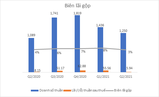 Luỹ kế 6 tháng đầu năm 2021, LNST của HAX đạt gần 62 tỷ đồng, tăng gấp 5,4 lần so với cũng kỳ năm 2020: Cụ thể riêng quý 2 doanh thu thuần đạt 1.250 tỷ đồng tăng 15% so với cùng kỳ, giá vốn hàng bán cũng tăng cao nên lãi gộp chỉ còn hơn 43 tỷ đồng giảm nhẹ so với quý 2/2020. Mặc dù chi phí lãi vay giảm mạnh nhưng chi phí bán hàng và chi phí QLDN lại tăng cao nên Haxaco lỗ thuần 600 triệu đồng. Nhờ lãi từ hoạt động khác 8,3 tỷ đồng nên HAX có lãi sau thuế 5,9 tỷ đồng giảm 26% so với quý 2/2020.