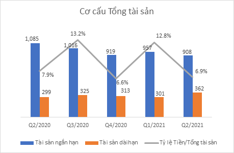 Về cơ cấu Tài sản ngắn hạn, chiếm tỷ trọng lớn nhất là Hàng tồn kho (chiếm 72%) với gần 657 tỷ đồng, tăng 16% so với hồi đầu năm, trong đó Hàng hóa bao gồm các loại xe là 575 tỷ đồng. Hiện công ty đang dùng số hàng hóa này để thế chấp các khoản vay tại ngân hàng là 469 tỷ đồng.