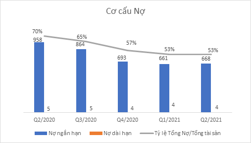 Kết thúc Quý 2/2021, công ty ghi nhận Tổng nợ phải trả 671 tỷ đồng, theo đó, tỷ lệ Nợ/Tổng tài sản của HAX chiếm 52,8%, tuy có giảm nhẹ trong 02 Quý gần đây nhưng vẫn duy trì ở mức cao. Các khoản nợ của công ty hầu hết là Nợ ngắn hạn, theo đó, trong năm nay công ty sẽ phải trả 671 tỷ đồng, trong đó gần 442 tỷ đồng là khoản vay ngân hàng ngắn hạn.