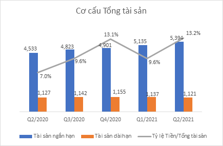 Tại thời điểm kết thúc Quý 2/2021, VCS ghi nhận Tổng tài sản gần 6.515 tỷ đồng, tăng 7,6% so với thời điểm đầu năm. Sự thay đổi này chủ yếu do tăng Tài sản ngắn hạn mà cụ thể là Các khoản phải thu và Hàng tồn kho.