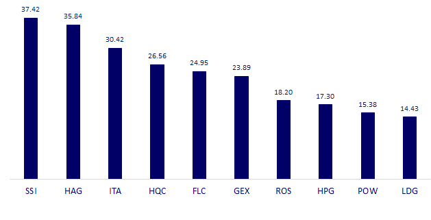 - VHM: doanh thu thuần và lợi nhuận ròng của VHM sau 9 tháng đạt lần lượt 61,681 tỷ đồng và 27,084 tỷ đồng, tăng 25% và 66% so với cùng kỳ, dẫn đầu sàn chứng khoán về lợi nhuận.