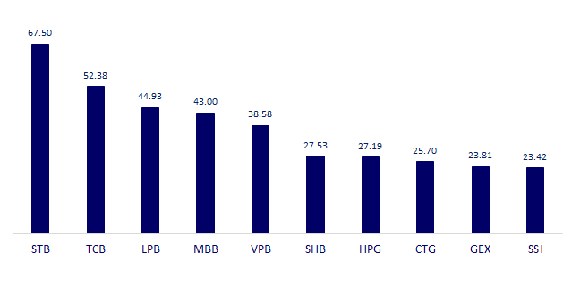 - VIC: Bà Lê Thị Thu Thủy, Phó Chủ tịch Tập đoàn Vingroup, cho biết đơn vị ô tô VinFast sẽ đầu tư tới 6 tỷ USD vào nhà máy sản xuất xe điện theo kế hoạch của tập đoàn tại Mỹ.