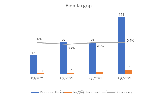 Lũy kế cả năm, doanh thu thuần đạt gần 345 tỷ đồng, gấp 2,6 lần; lợi nhuận sau thuế xấp xỉ 15 tỷ đồng, tăng 80% so với năm 2020. Lợi nhuận chưa phân phối tính đến cuối năm ngoái là 26 tỷ đồng.