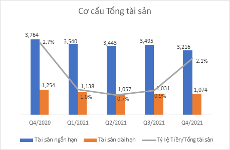 Tính đến thời điểm 31/12/2021, tổng tài sản của XMC đạt 4.290 tỷ đồng, giảm 14,5% so với cùng kỳ năm trước, với mức giảm hầu hết các khoản mục.
