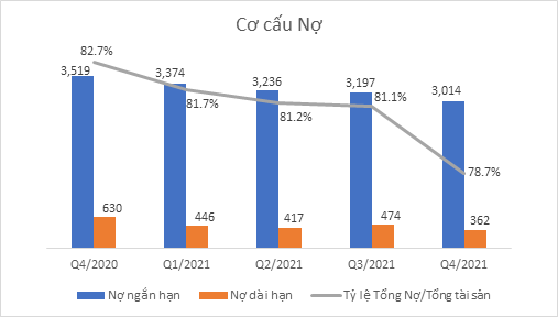 Về cơ cấu tài sản ngắn hạn, Các khoản phải thu và Hàng tồn kho đều giảm so với thời điểm cuối năm ngoái và giảm lần lượt 12,8% và 25,1%.