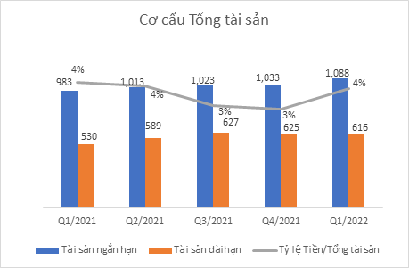 Về cơ cấu Tài sản ngắn hạn, Các khoản phải thu tiếp tục chiếm tỷ trọng lớn nhất với 74,4% với 810 tỷ đồng, không có nhiều thay đổi so với thời điểm đầu năm. Trong đó Phải thu khách hàng ghi nhận 514 tỷ đồng, Trả trước người bán 124 tỷ đồng và Phải thu khác 136 tỷ đồng.