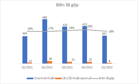 Kết thúc Quý 1/2022, LNST của NAF ghi nhận 8,3 tỷ đồng giảm 28,1% so với cùng kỳ: Cụ thể, doanh thu thuần của NAF đạt hơn 307 tỷ đồng và Giá vốn hàng bán gần 253 tỷ đồng, đều tương đương cùng kỳ năm 2021. Tuy nhiên, trong kỳ công ty phát sinh tăng Chi phí bán hàng 19,6% (do dịch bệnh khiến chi phí cước biển, logistic tăng mạnh), thêm vào đó Các khoản giảm trừ doanh thu (bao gồm Giảm giá hàng bán và Hàng bán bị trả lại) trong riêng Q1/2022 đã gần bằng cả năm 2021. Kết quả là, cuối quý, công ty chỉ ghi nhận 8,3 tỷ đồng LNST, giảm 28,1% so với cùng kỳ.
