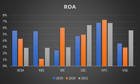 Do cách hạch toán ghi nhận doanh thu 1 lần nên ROE và ROA của BCM qua các năm có phần kém hơn so với các doanh nghiệp khác trong ngành BĐS KCN khi những doanh nghiệp này ghi nhận phân bổ đều doanh thu 50 năm. Hơn nữa do phần lớn các dự án cũ của BCM đã được lấp đầy gần hết cũng như việc thoái vốn các công ty con hoạt động trong lĩnh vực cùng với công ty mẹ dẫn tới việc ROA và ROE trong 3 năm gần đây của BCM có xu hướng giảm.