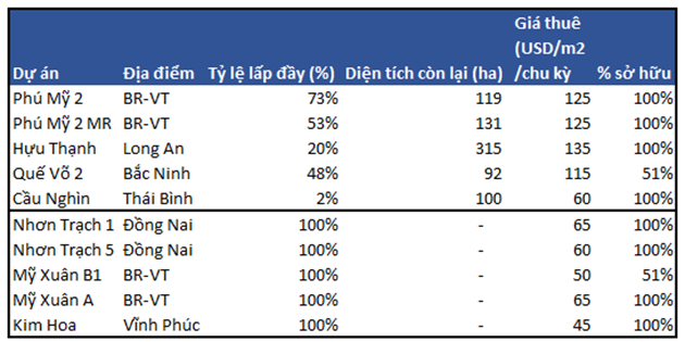 Về bất động sản KCN, hiện tại IDC còn 5 dự án cho thuê là Phú Mỹ 2, Phú Mỹ 2 Mở rộng, Hựu Thạnh, Quế Võ 2 và Cầu Nghìn với tổng quỹ đất sẵn sàng cho thuê lên tới 757ha. Các dự án còn lại của IDC, tỷ lệ lấp đầy đều đã đạt 100%. Quỹ đất thương phẩm lớn đảm bảo cho việc tăng trưởng của hoạt động kinh doanh KCN trong giai đoạn 5 năm tới. Các KCN của IDC đều được giải phóng mặt bằng từ trước với chi phí thấp.