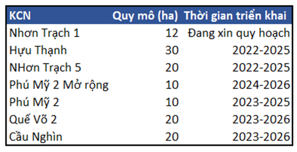 Theo chia sẻ của ban lãnh đạo, IDC có kế hoạch phát triển quỹ đất khoảng 2,500 ha tại các tỉnh Tiền Giang, Hải Phòng, Hưng Yên. Trong đó, các khu công nghiệp phía Bắc dự kiến phát triển từ 1000-1200 ha và các khu công nghiệp phía Nam đạt khoảng 500-1000 ha. Tổng diện tích dự kiến được cấp chủ trương đầu tư trong giai đoạn 2023-2024 dự kiến đạt 1,400 ha. Toàn bộ diện tích quỹ đất này sẽ được bổ sung và cho thuê từ năm 2025 trở đi, duy trì tăng trưởng cho IDC sau khi KCN Hựu Thạnh dần lấp đầy. Bên cạnh cho thuê đất công nghiệp, IDC còn cho thuê nhà kho và nhà xưởng xây sẵn tại chính KCN của mình. Giá cho thuê nhà xưởng dự kiến sẽ giao động quanh mức 4.5-5 USD/m2/tháng và các dự án này chủ yếu sẽ được triển khai trong giai đoạn từ 2022-2026.