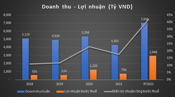 Năm 2022, tiếp tục là một năm mà IDC ghi doanh thu đột biến khi điều chỉnh hồi tố ghi nhận hơn 1400 tỷ doanh thu chưa thực hiện của dự án KCN Nhơn Trạch 5. Bên cạnh đó thì doanh nghiệp cũng ghi nhận doanh thu 1 lần đối với dự án Phú Mỹ 2, Phú Mỹ 2 Mở rộng, Hữu Thạnh và Mỹ Xuân B1 dẫn tới doanh thu trong 9 tháng đầu năm 2022 đạt mức hơn 7000 tỷ, vượt cả năm 2021. Thậm chí, lợi nhuận trước thuế tăng gần gấp 4 lần so với cả năm ngoái, đạt gần 2948 tỷ.