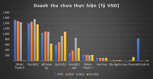 Nhìn vào đồ thị doanh thu chưa thực hiện, có thể dễ dàng thấy được doanh thu chưa thực hiện của Nhơn Trạch 5 và Mỹ Xuân A giảm 1 cách đáng kể khi IDC thay đổi cách ghi nhận doanh thu BĐS KCN thành 1 lần. Đến thời điểm cuối tháng 9 năm 2022, doanh thu chưa thực hiện của IDC chủ yếu đến từ KCN Phú Mỹ 2 với hơn 1300 tỷ, KCN Mỹ Xuân B1 với 645 tỷ, Quế Võ 2 với hơn 1000 tỷ. Hiện tại thì IDC đang tiếp tục đưa ra chính sách phù hợp để có thể tiếp tục ghi nhận doanh thu 1 lần đối với các dự án KCN còn lại chưa đủ điều kiện.