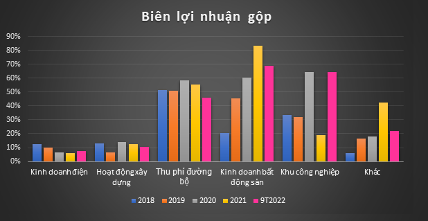 Về biên lợi nhuận gộp, có thể thấy là lợi nhuận từ mảng BĐS KCN đã tăng lên rõ rệt trong 2020 và 2022, khi có doanh thu đột biến từ việc thay đổi chính sách hạch toán, đạt ở mức 65% và dự kiến tiếp tục giữ vững ở mức này. Khả năng BLN gộp quay trở lại mốc cũ là khó xảy ra do IDC đang tiếp tục thay đổi chính sách công nợ để các dự án còn lại đủ điều kiện ghi nhận doanh thu 1 lần trong thời gian tới. Hoạt động kinh doanh điện dù chiếm 30% tổng doanh thu nhưng biên lợi nhuận rất nhỏ, chỉ ở mức 8%. Những mảng còn lại dù biên lợi nhuận gộp cao, nhưng đóng góp không đáng kể trong doanh thu lợi nhuận của IDC.