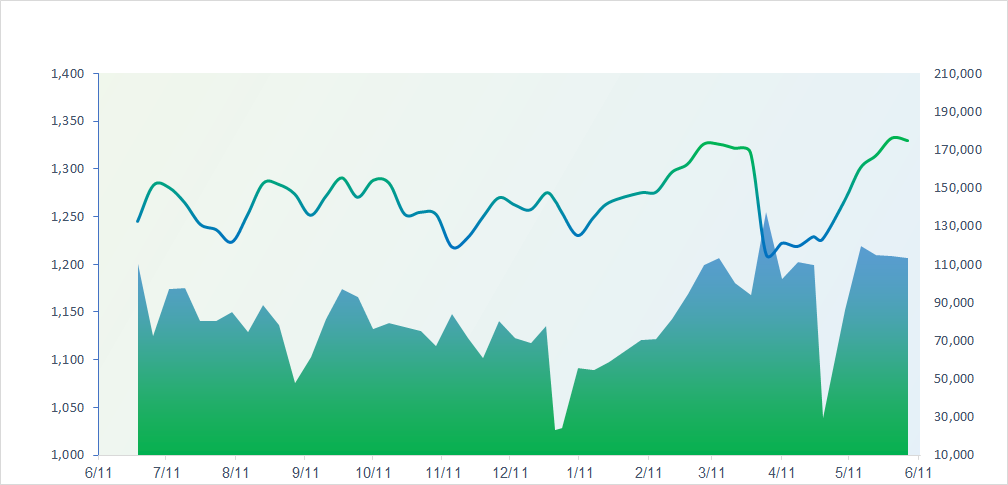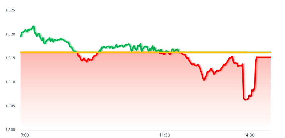Mốc MA20 ngày tại mức 1325 điểm tiếp tục đóng vai trò là kháng cự mạnh của thị trường trong ngày hôm qua. Điểm đáng chú ý là thị trường rung lắc với thanh khoản thấp cho thấy áp lực bán tại vùng hiện tại không quá mạnh mẽ. Tuy nhiên, đường MACD vẫn đang mở rộng theo chiều xuống nên khả năng VN-Index vẫn sẽ tiếp tục điều chỉnh trong các phiên tiếp theo.