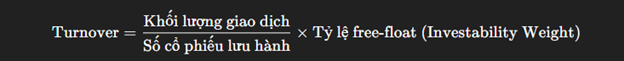 Thanh khoản phải vượt 0.050% trung vị turnover (được tính theo công thức dưới) trong ít nhất là 10/12 tháng gần nhất.