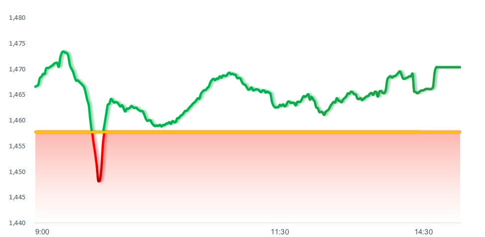 VN-Index mặc dù kết phiên trong sắc xanh nhưng lại hình thành 1 cây nến đỏ với bóng nến dài. Điều này cho thấy áp lực bán đã bắt đầu xuất hiện mạnh hơn quanh vùng 1470 điểm. Đáng chú ý, trên chart 1H đang cho thấy tín hiệu phân kỳ âm nên khả năng cao trong tuần này có thể sẽ xuất hiện 1 phiên điều chỉnh mạnh.