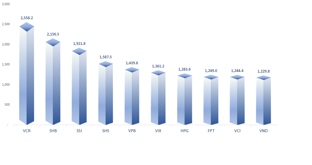 TOP CP GIAO DỊCH NHIỀU NHẤT (KHỐI LƯỢNG CP - TRIỆU)