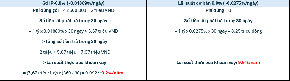 Gói P-6.8% có lợi ích gì so với lãi suất cơ bản 9.9%?